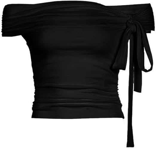 Woman Off Shoulder Ruched Tie Back Crop Top Summer Lantern Sleeve Boho Shirt Blouse