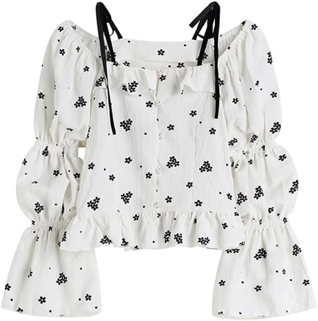 Retro Floral Print Women Blouses Baggy Puff Sleeve Ruffle Top Slash Neck Off Shoulder Clothes quantity